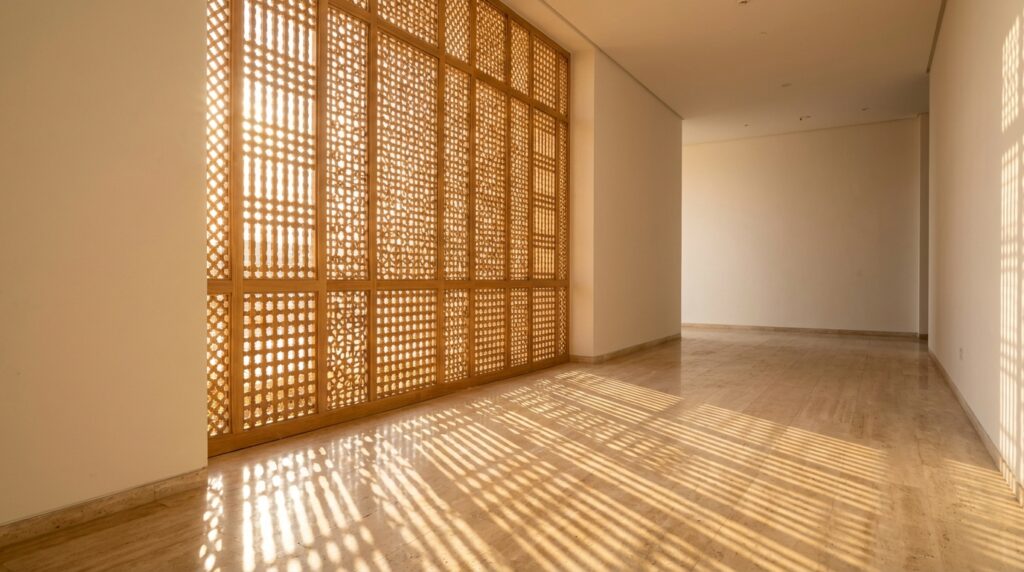 - Modern Mashrabiya: Utilizing parametric design to create passive cooling screens that regulate natural light without compromising minimalist aesthetics.